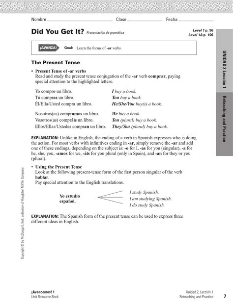 Read Avancemos 2 Unidad 1 Leccion Reteaching And Practice Answers Reader