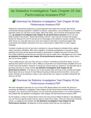 Download Ap Statistics Investigative Task Chapter 25 Sat Performance Answers Doc online is a convenient and frugal way to read Ap Statistics Investigative Task Chapter 25 Sat Performance Answers you love right from the comfort of your own home. Yes, there sites where you can get Doc "for free" but the ones listed below are clean from viruses and completely legal to use.